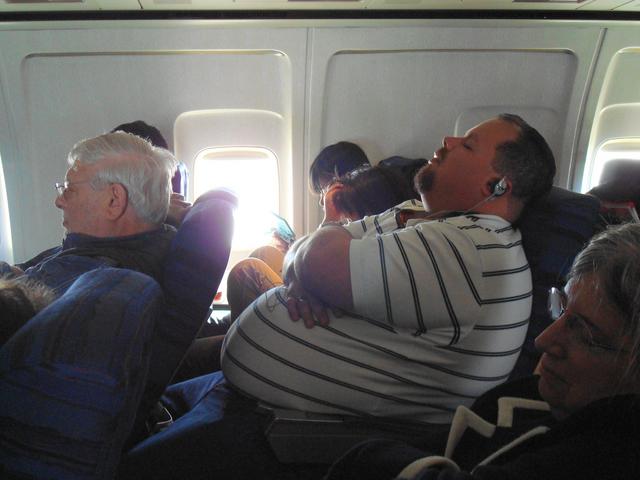 そういえば、デブ肉が自分のシートの方まで半分以上はみだしていたために、自分は座れず立ったまま7時間といったニュースがあったなぁ。こういう場合はデブ肉が悪いんだから、上の写真のようにしてもらうか、デブ肉をたたんでもらうか(笑)、立つのはデブ肉にすればよかったんじゃないかと思うよ。